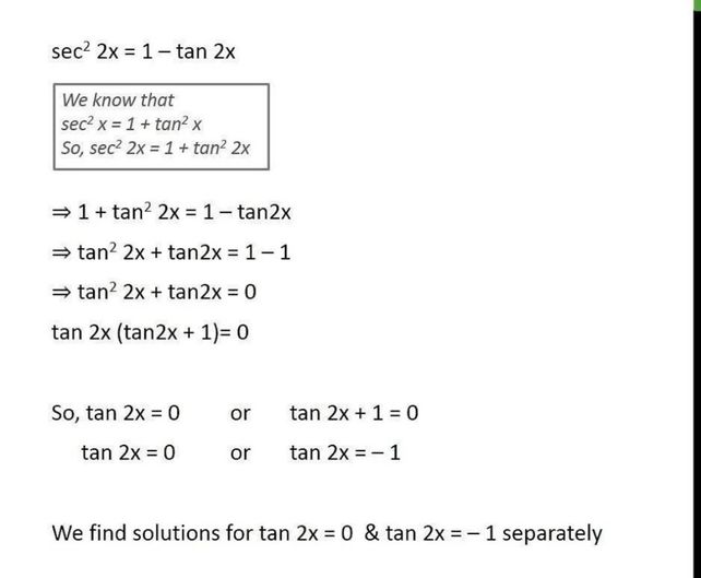 Sec22x 1 Tan 2x Find The General Solution Maths Trigonometric Functions Meritnation Com